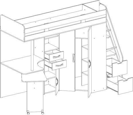 Кровать-чердак Карамель 77-03 (МелВери) – товар доступен к покупке в интернет-магазине orenburgskiy-dommebeli.ru. Цена – 34 341 руб. без учета доставки. Стоимость дополнительных услуг и сроки получения мебели уточняйте у менеджера. Возможен безналичный расчет, оплата по карте на сайте.