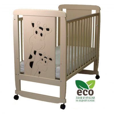 Детская кроватка с полозьями на колесах Соня 02 с декором Жираф 3Д (Соня)
