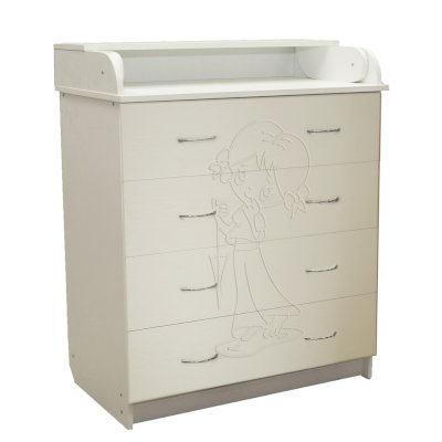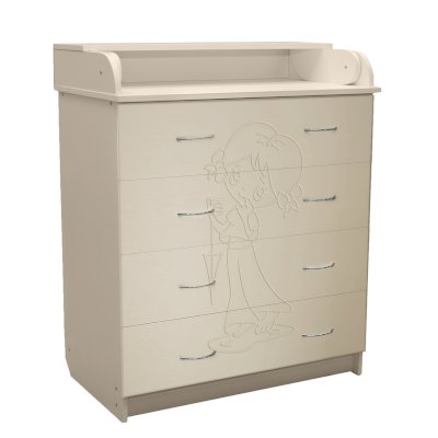 Вам понравится привлекательный внешний вид детского комода. На его лицевой части вы увидите углубленный декор в виде девочки.