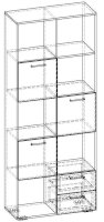 Применение задней стенки из ЛДСП (в ячейках с ящиками и фасадами) позволяет использовать данный стеллаж для зонирования пространства (чтобы предотвратить опрокидывание, необходимо обеспечить крепление стеллажа к стене).