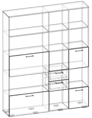Применение задней стенки из ЛДСП (в ячейках с ящиками и фасадами) позволяет использовать данный стеллаж для зонирования пространства (чтобы предотвратить опрокидывание, необходимо обеспечить крепление стеллажа к стене).