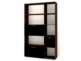 Применение задней стенки из ЛДСП (в ячейках с фасадами) позволяет использовать данный стеллаж для зонирования пространства (чтобы предотвратить опрокидывание, необходимо обеспечить крепление стеллажа к стене).