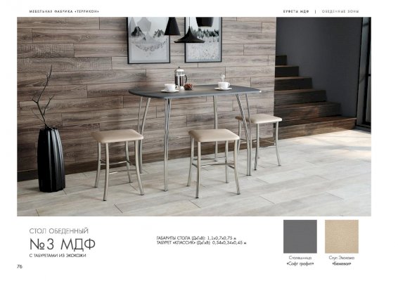 Столешница выполнена в цвете Софт графит, сидушка - Экокожа бежевая