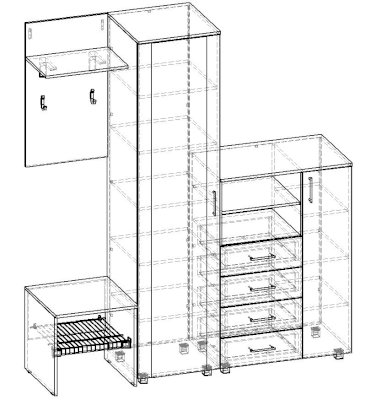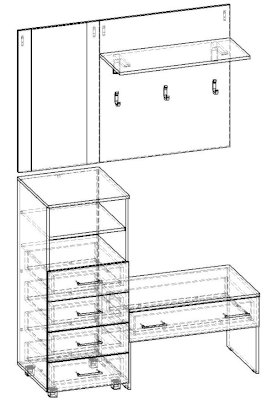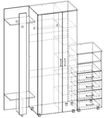 Габаритные размеры композиции (мм) (ШхГхВ): 1300х516х2100
