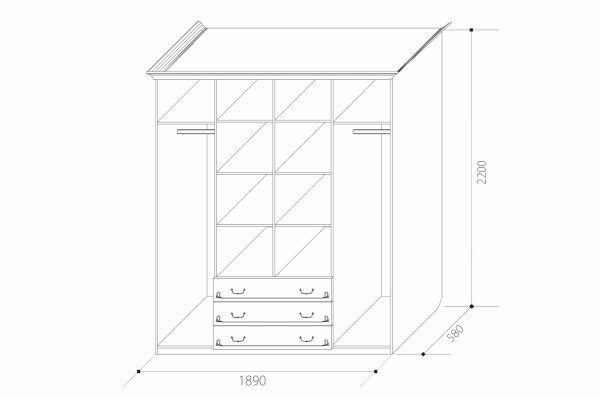 Четырехстворчатый шкаф с ящиками и зеркалом Ивушка-5 (Марибель)