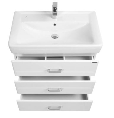 Современная лаконичная модель тумбы AQUATON Америна 80 М с тремя ящиками имеет ширину 80 см и выполнена в белоснежном глянцевом цвете.