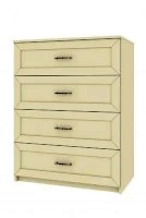 Карнизы и рамочные фасады из МДФ; столешницы обработаны в кромке 2 мм; ручка – патинированная бронза; шариковые направляющие полного выдвижения.