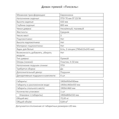 Диван Пиксель (Аквилон) – товар доступен к покупке в интернет-магазине orenburgskiy-dommebeli.ru. Цена – 30 317 руб. без учета доставки. Стоимость дополнительных услуг и сроки получения мебели уточняйте у менеджера. Возможен безналичный расчет, оплата по карте на сайте.