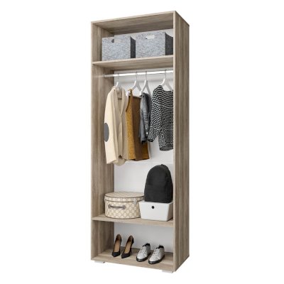 Шкаф распашной из серии Наоми – красивое и стильное решение для современного интерьера. Модель имеет две распашные створки, изготовленные из МДФ, ручки являются частью фасадов. Внутренняя комплектация состоит из вместительного отделения со штангой для одежды на вешалках и двух ниш для хранения трикотажа или обуви.